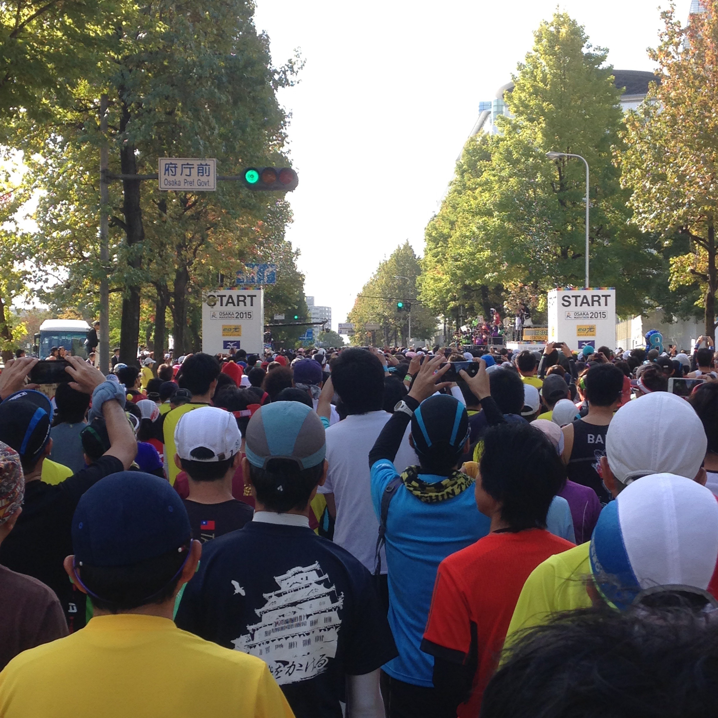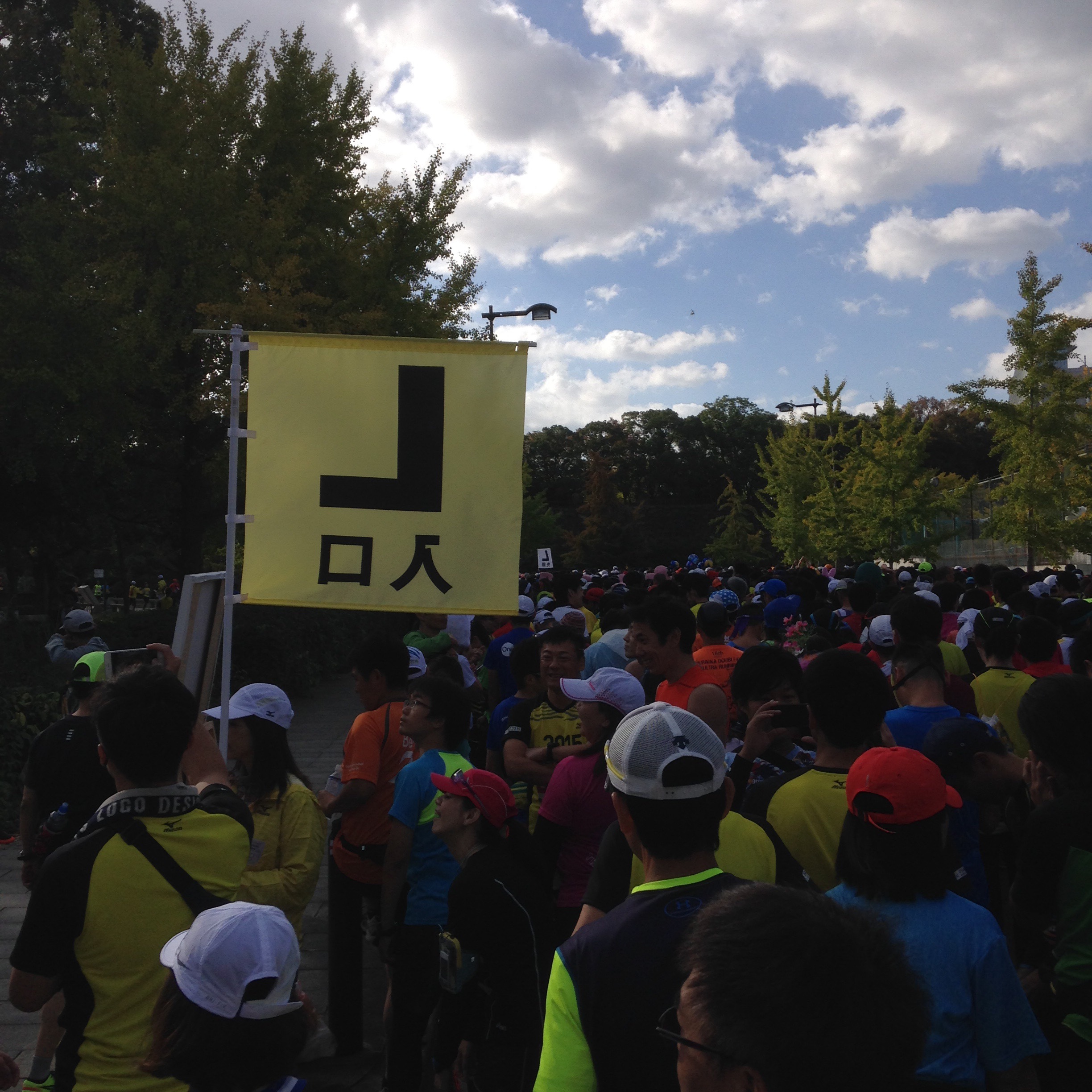 (うわーめっちゃ人おるやん、スタートゲート 通るん、何分かかんねやろ、、、それにしても寒いな!!)