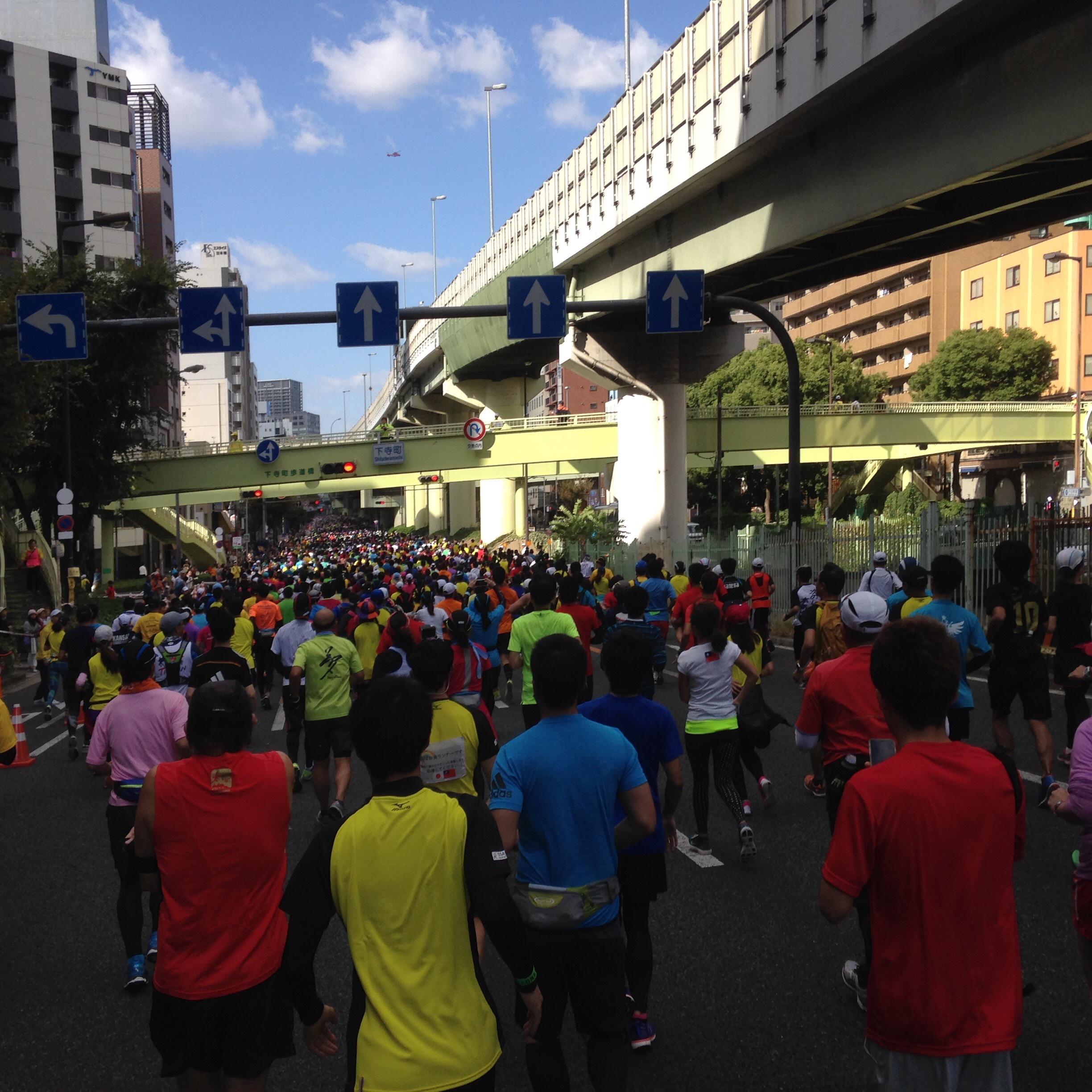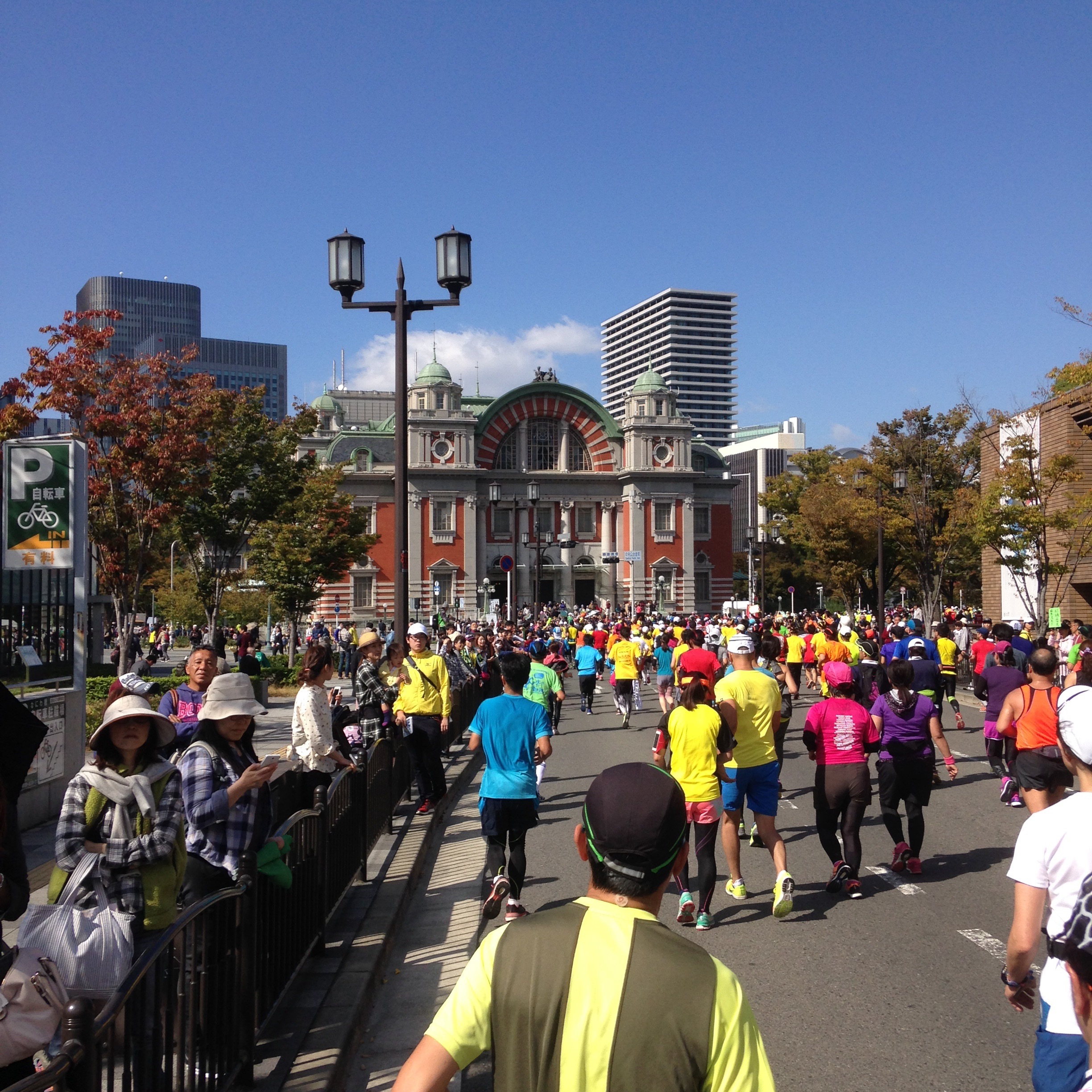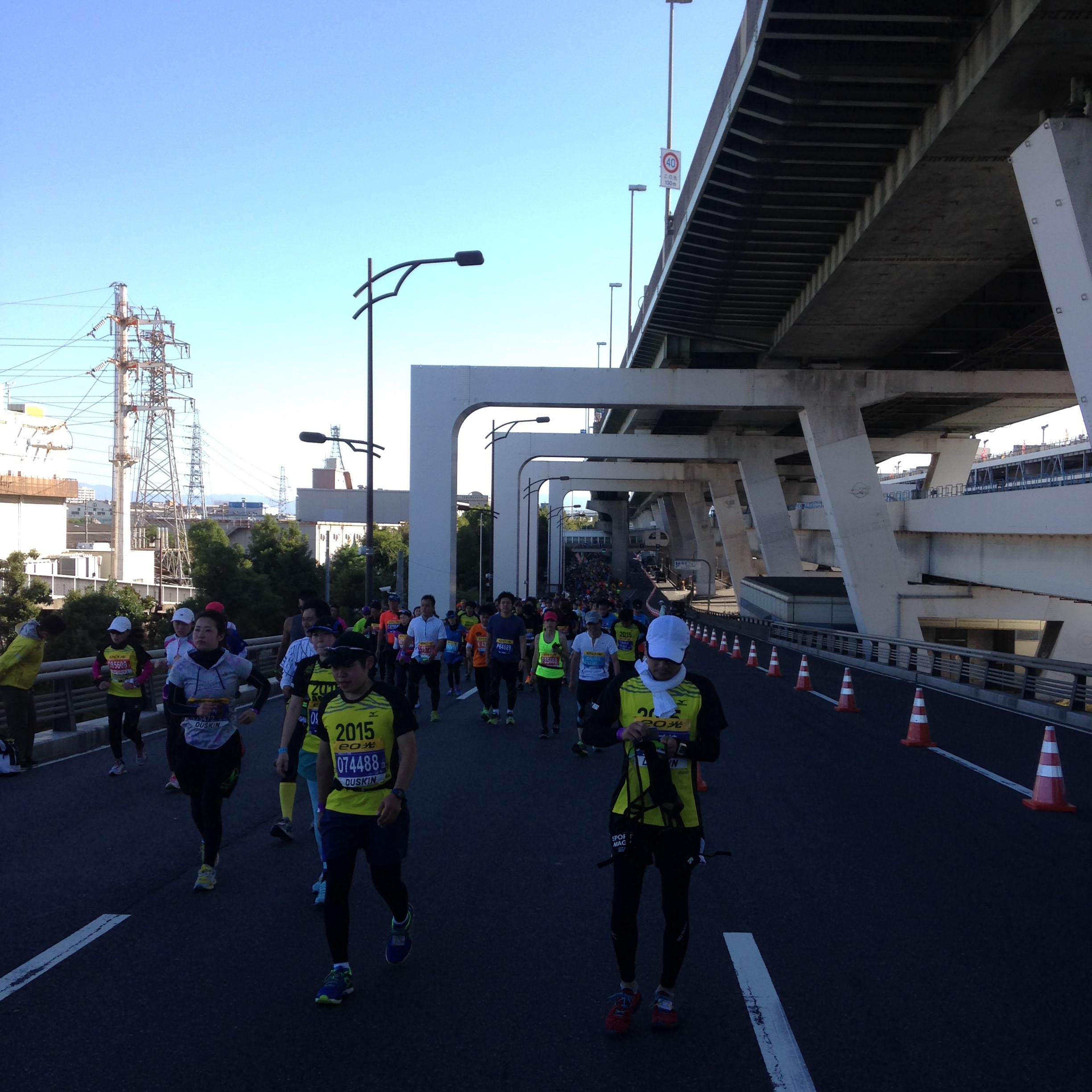 (大阪の街を走ってるって感じやな〜 もう、いつも練習で走ってた距離超えたな〜てか膝痛いし!! マラソンってこんなもんなもんなんやろな〜)