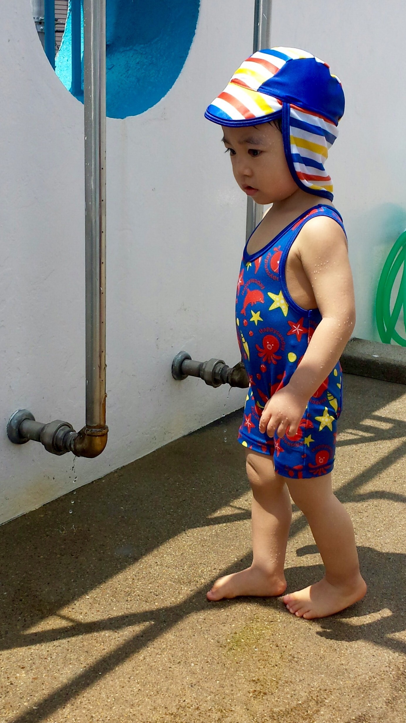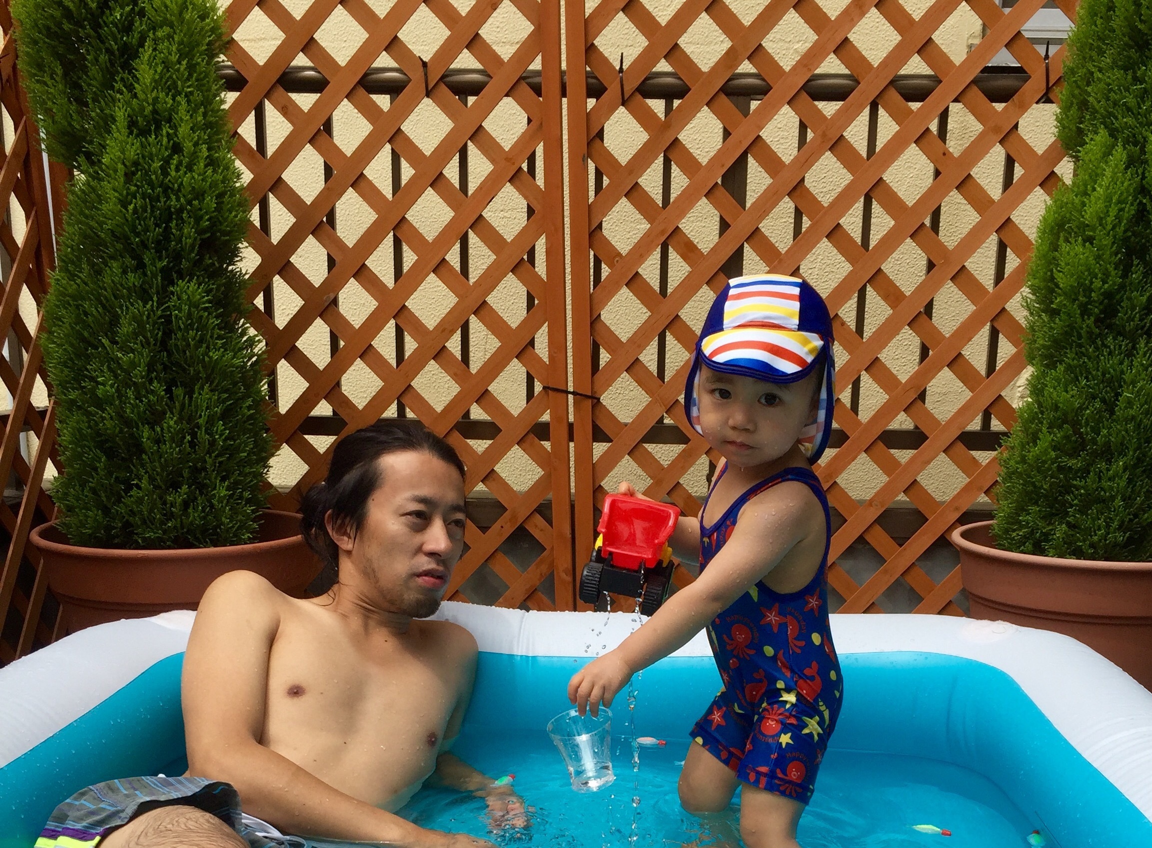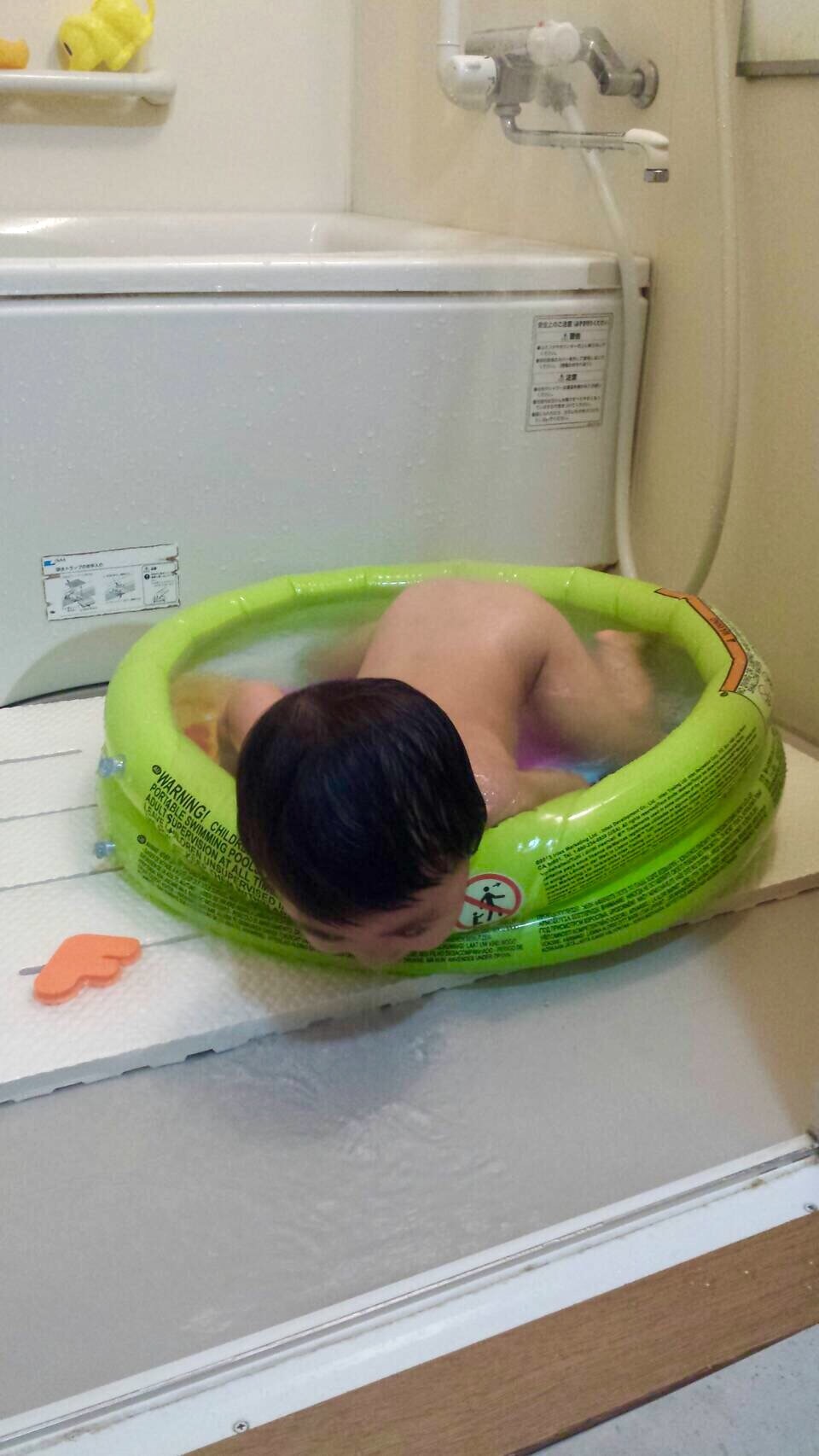 うちの息子は、たまに自宅の近所の幼稚園が解放してくれるプールで、遊ばせてもらってるみたいで。