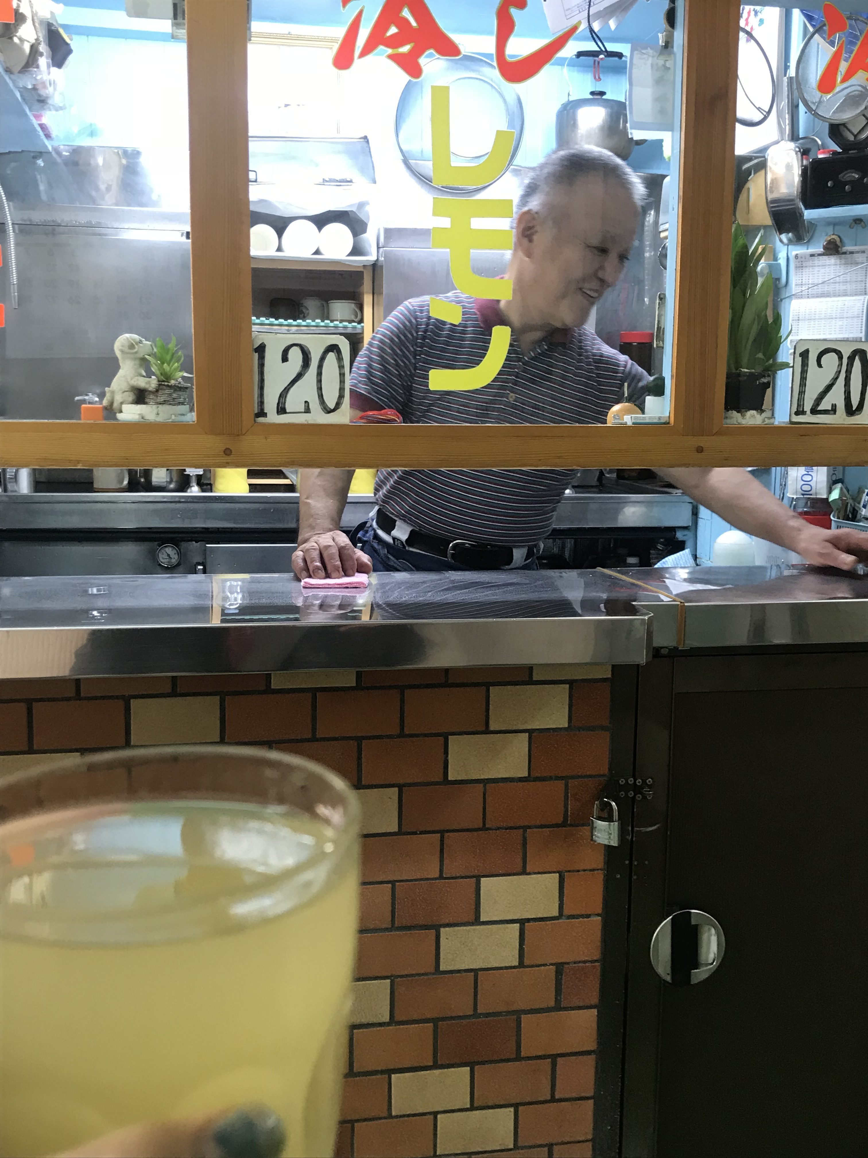 ここで冷やしレモンを飲みます(冷やしレモンとはシークヮーサージュースです)