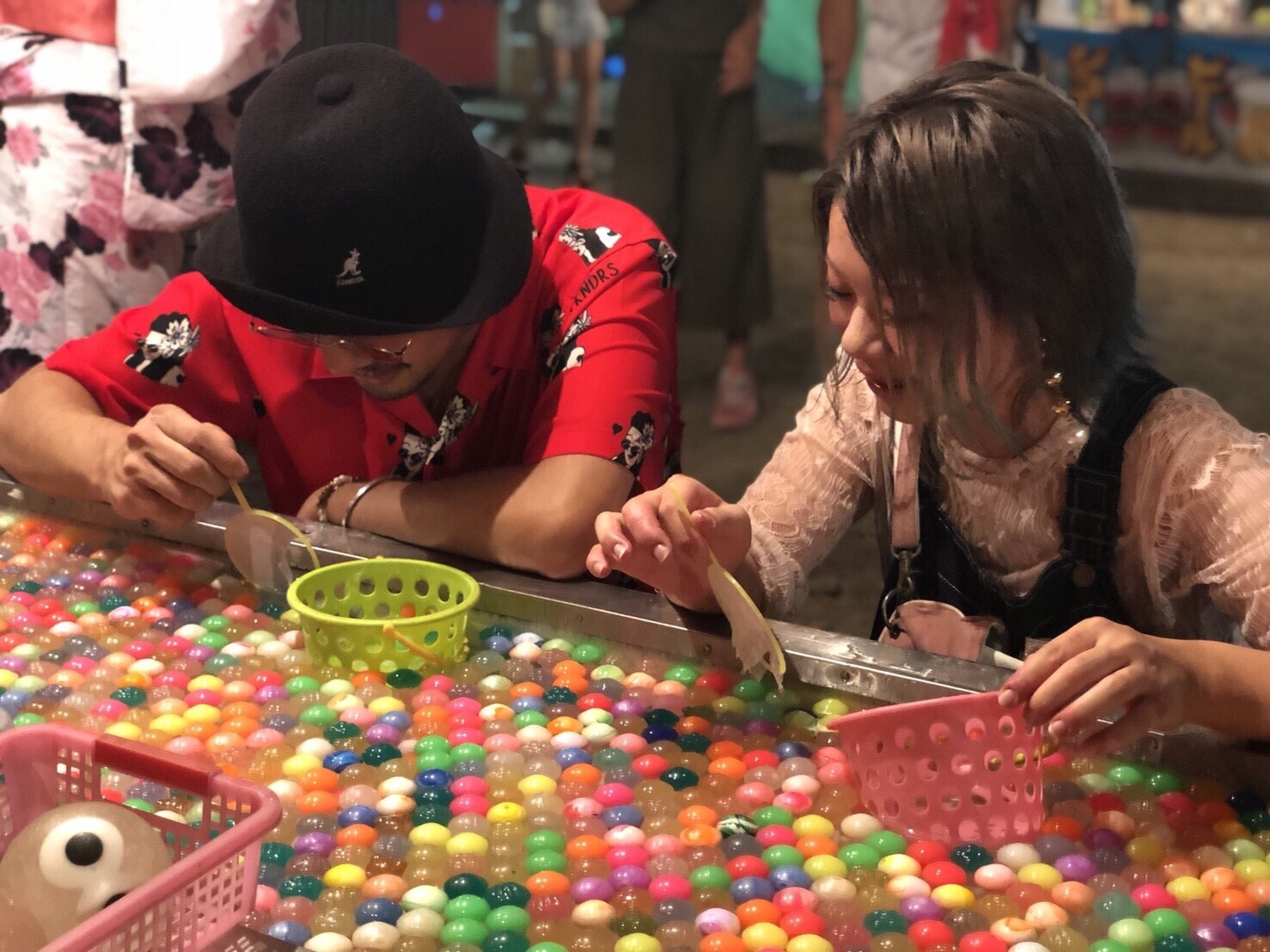 岡田さんとのスーパーボールすくい対決は