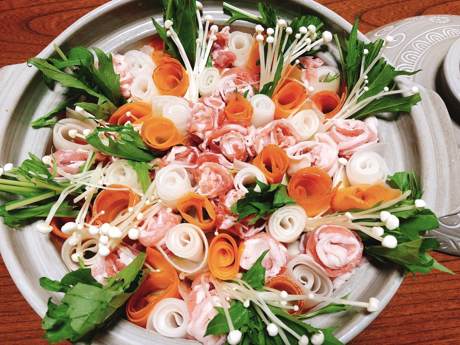 お花のように野菜をくるくる。お肉もくるくる。