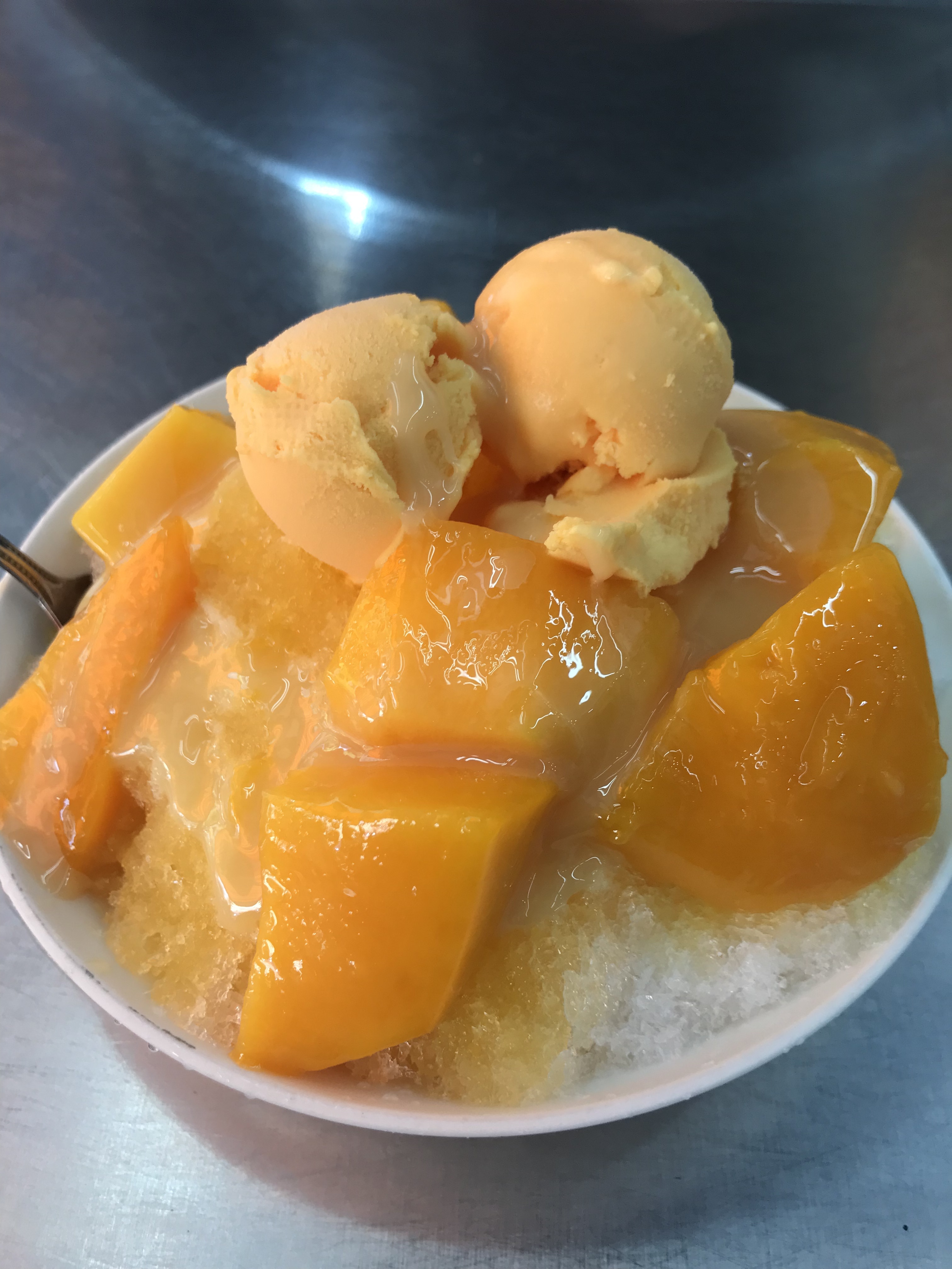 お椀というよりもお皿ってサイズで、山盛りの氷、大きくゴロゴロしたマンゴーをたくさん、マンゴーアイスを2スクープ、それに練乳。一人で食べる量ではないような感じなのですが、あれだけ灼熱の中だと、不思議と食べられたりするもんです(ちょっと無理したけど…)
