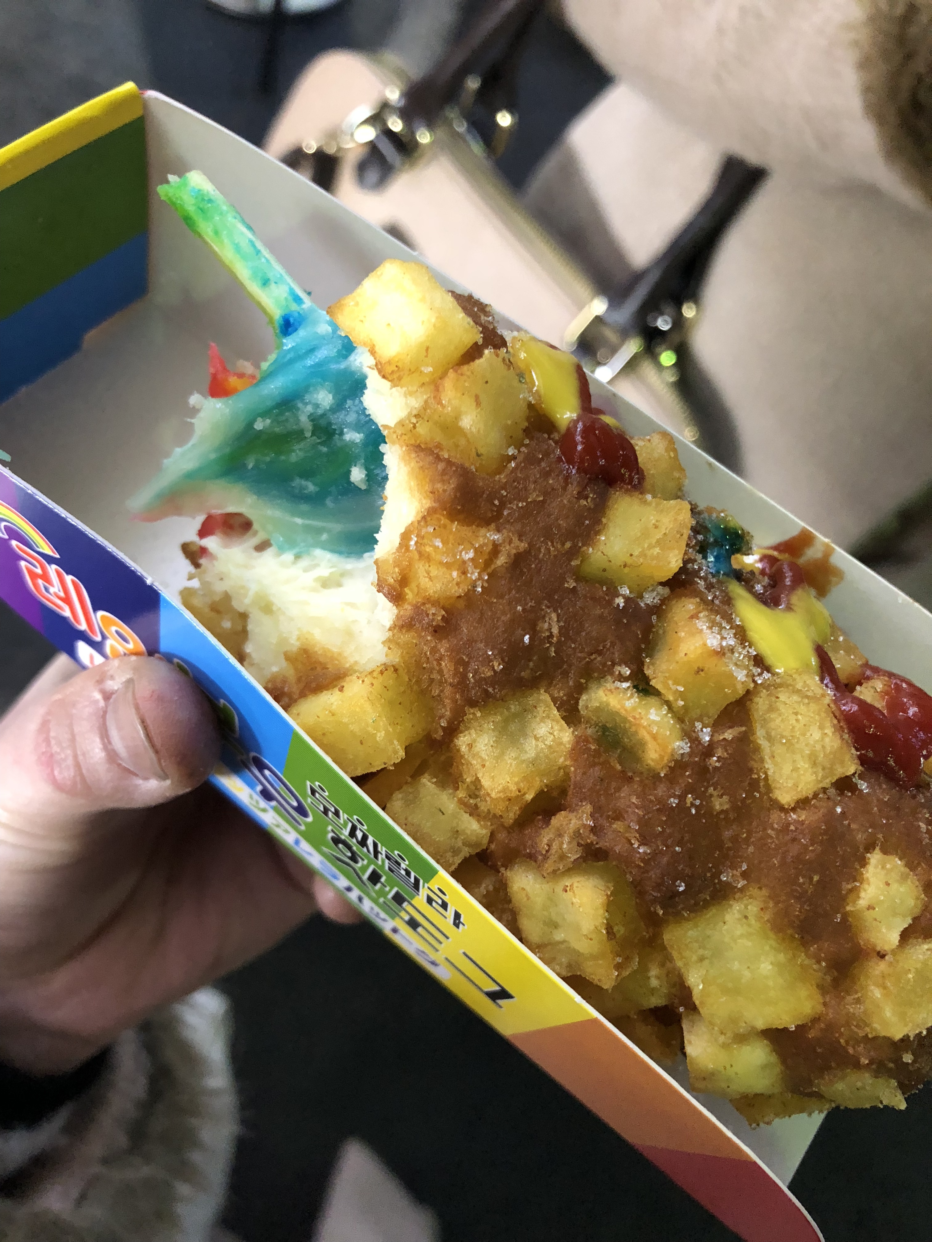 私が食べたのは普通のではなくちょっと変わっているレインボーチーズハットグ。